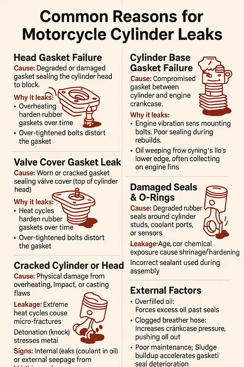 Oto najczęstsze przyczyny cylinder motocyklowy wycieki: